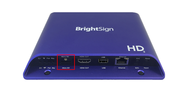 1. Entnehmen Sie nun die microSD Karte aus dem Kartenslot des BrightSign