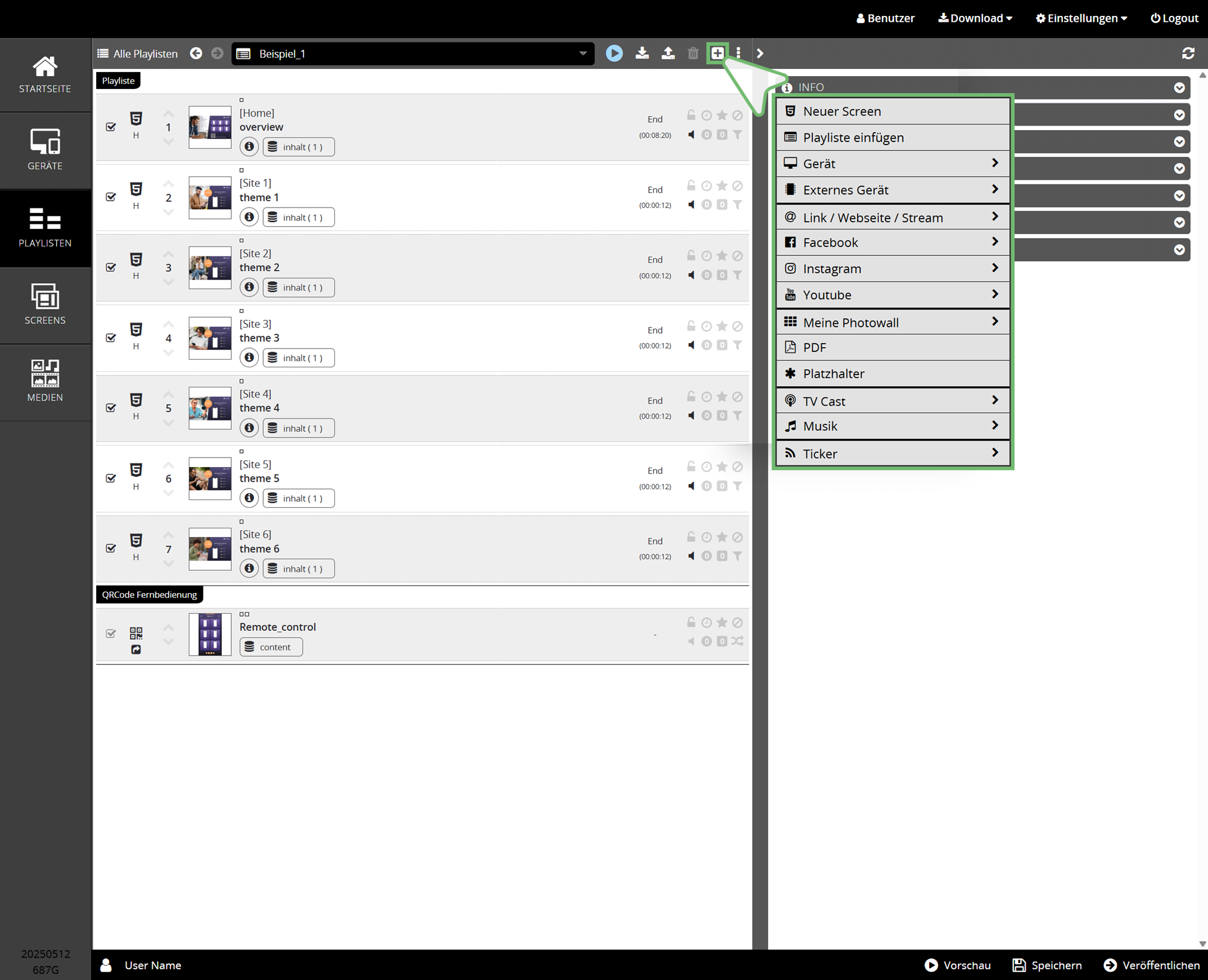 - eine individuelle Vorlage oder Playliste sowie Medien oder Audiodateien hochladen.