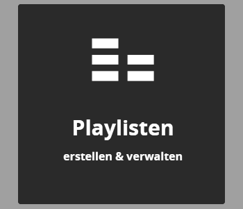 - Playlisten: Playlistenverwaltung, die Ihnen ermöglicht neue Playlisten zu erstellen sowie die von Ihnen bereits erstellten Playlisten zu bearbeiten.