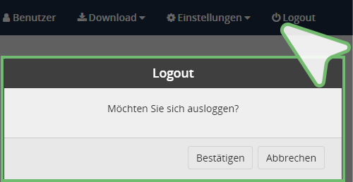 Wenn Sie sich von Ihrem Cloud-Konto abmelden möchten, dann klicken Sie auf die Funktion Logout und bestätigen anschließend die Sicherheitsabfrage.